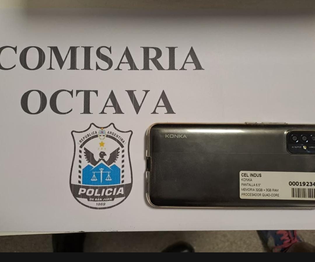 La Policía detuvo a un masculino mayor de edad por intento de hurto en Media Agua, departamento Sarmiento. Fue aprehendido mientras intentaba huir con un teléfono celular marca Konka 4G.