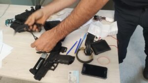 Al realizar un palpado de urgencia, se encontró que Videla portaba un arma de aire comprimido tipo 4×5 mm, marca Fox, un arma blanca tipo navaja, un pantalón táctico, cinto interno táctico, pistolera tipo muslera táctica, chomba táctica, insignias que no corresponden a las fuerzas de seguridad, borcegos tácticos y pasamontañas.