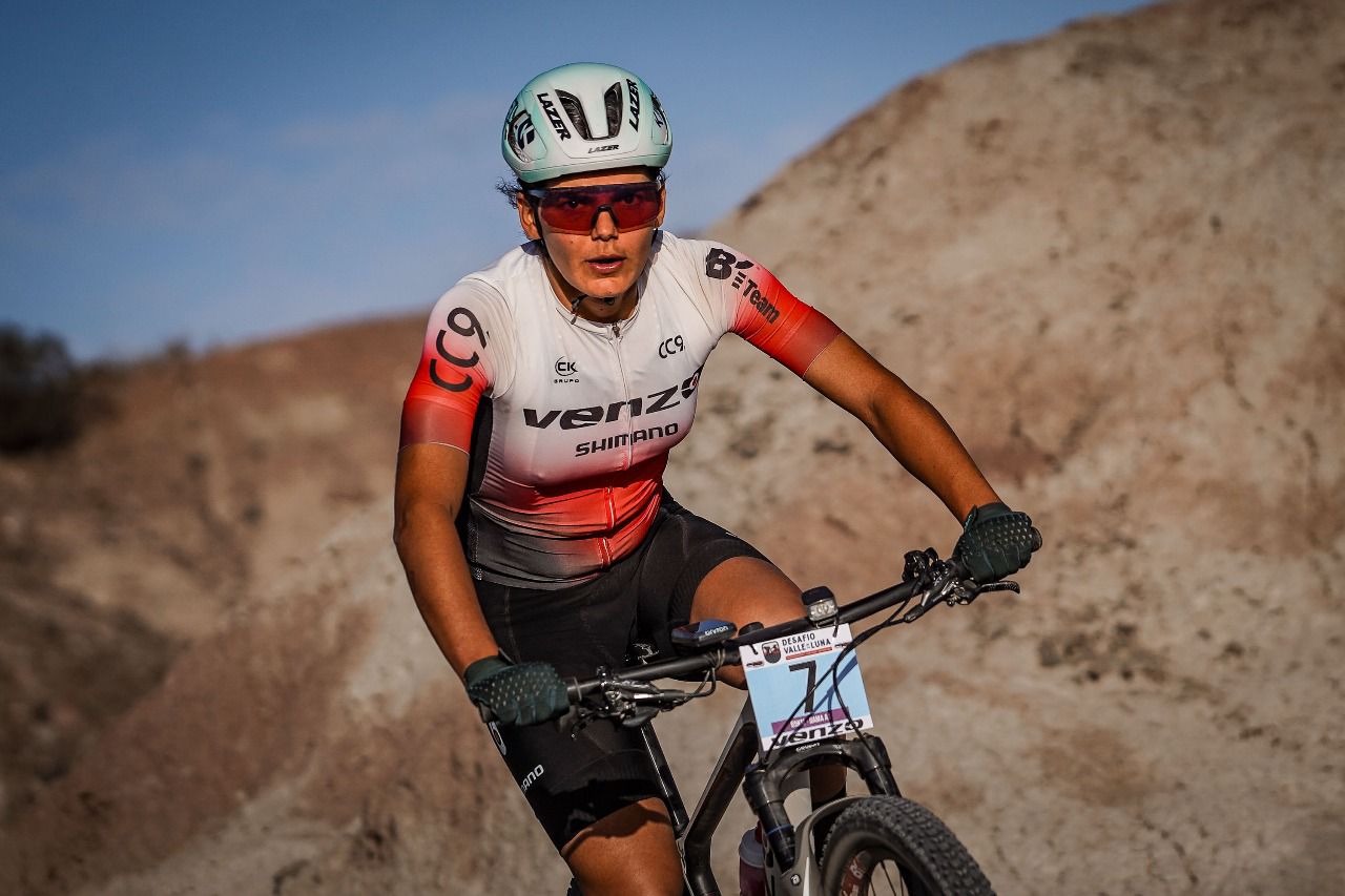_La ciclista sanjuanina del equipo Venzo se impuso nuevamente en la distancia principal de 65 km y revalidó su título en el imponente escenario del Parque Ischigualasto._