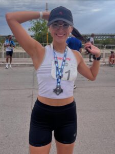 Ir a un Nacional es importante porque vas a representar a tu provincia y siempre intentas que todo salga bien. Me había puesto el objetivo de llegar entre las primeras 15 o 20 atletas y se dio un Puesto 9. Estaba muy feliz por ese resultado! La carrera fue muy dura por el clima, no hacía calor, pero había mucho viento, fue un circuito rápido donde pasamos por muchos lugares de Santiago. La organización muy buena y eso como atleta te hace sentir cómoda.