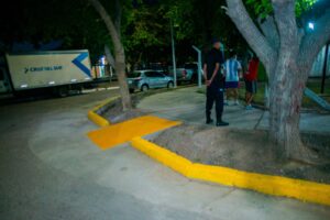Los trabajos incluyeron 900 metros lineales de zapata y cordón, 250 metros cuadrados de banquina, 200 metros cuadrados de veredas nuevas, además de la construcción de puentes rampa y puentes vecinales que garantizan accesibilidad y seguridad en los desplazamientos diarios. También se realizó la pintura integral de toda la zona intervenida, incluido el playón deportivo del barrio, a lo que se sumó la instalación de nuevo equipamiento urbano como bancos y basureros.