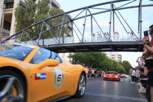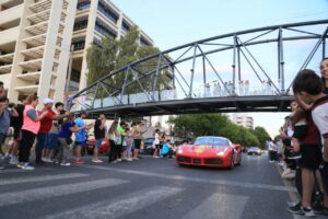 El punto de encuentro fue el estacionamiento de la Puerta 1 del Circuito San Juan Villicum sobre las 17:00, donde la caravana inició su recorrido hacia la ciudad de San Juan a las 17:30. El trayecto incluyó Ruta Nacional 40, Avenida Circunvalación, Avenida Guillermo Rawson y Avenida Libertador General San Martín, pasando por el Centro Cívico y Parque de Mayo, donde las Ferraris finalizaron su recorrido en el Hotel Del Bono Park.